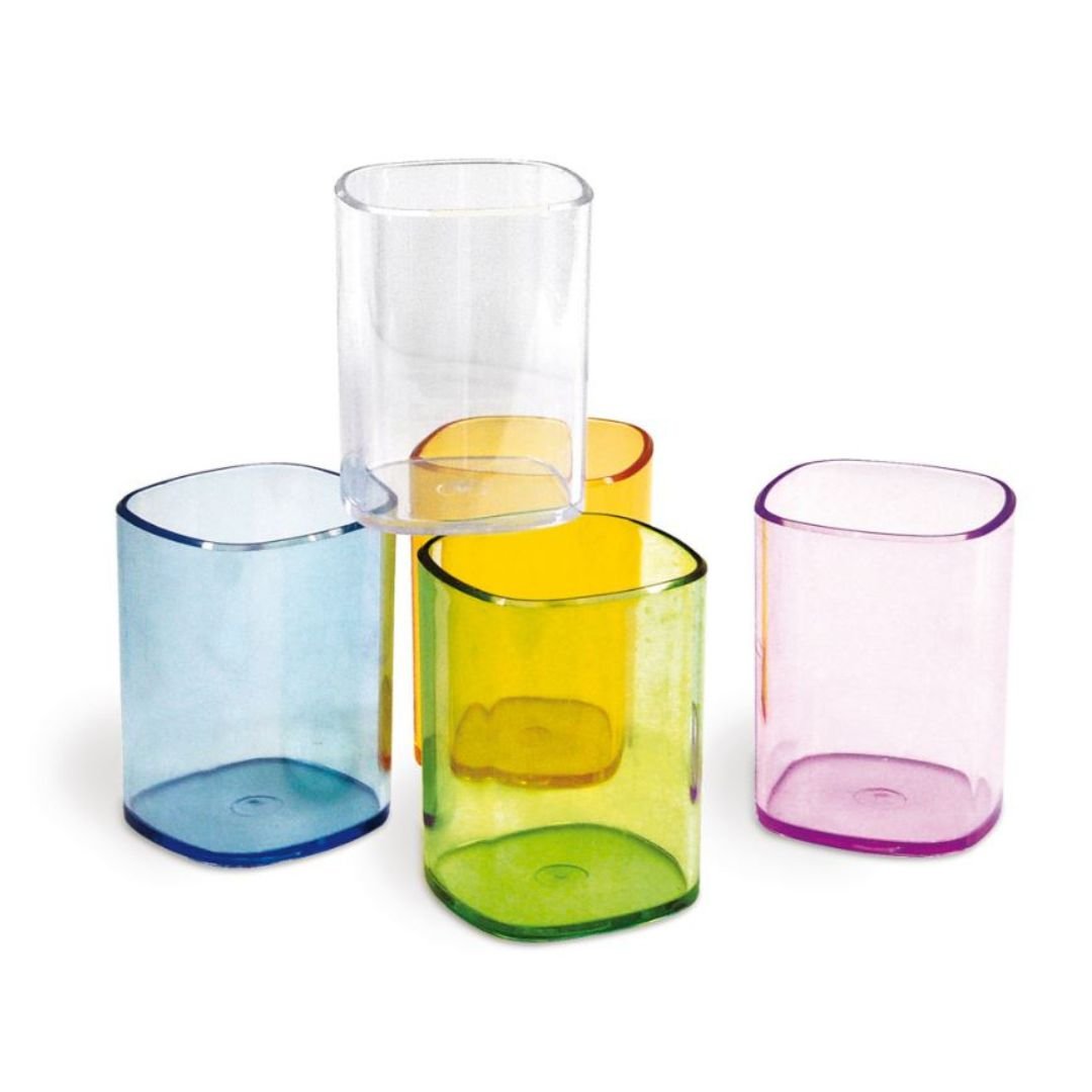 Portapenne trasparente colorato di spessore elevato e ottima stabilità. Colore trasparente. Ideale per contenere penne, matite e altri strumenti di scrittura.