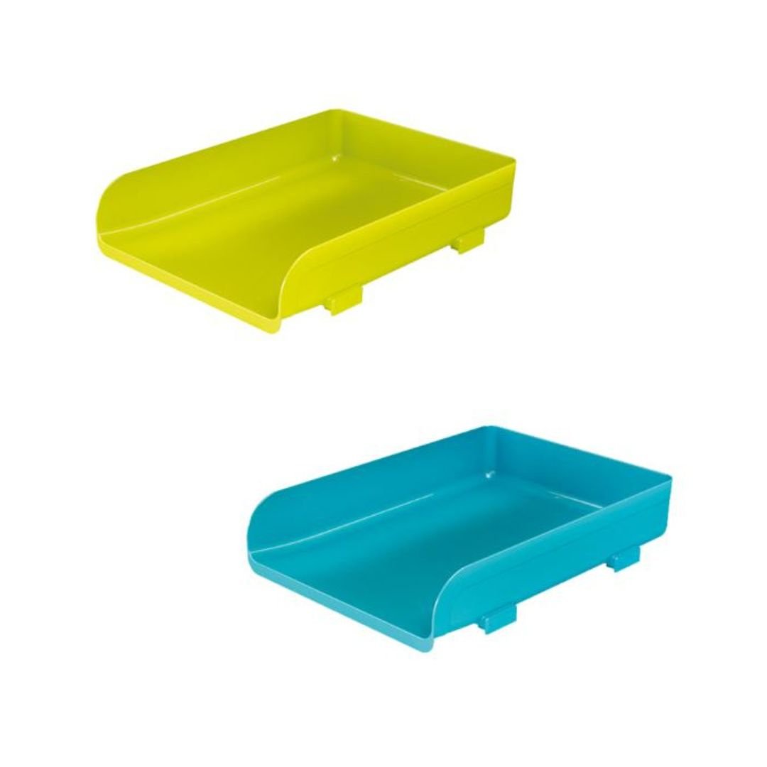 Linea di accessori da scrivania di qualità e stile. Realizzata in materiale infrangibile con accostamenti di finiture lucide e satinate. Vaschette impilabili in linea o a sbalzo. Adatte a contenere fino al formato 23x32cm.